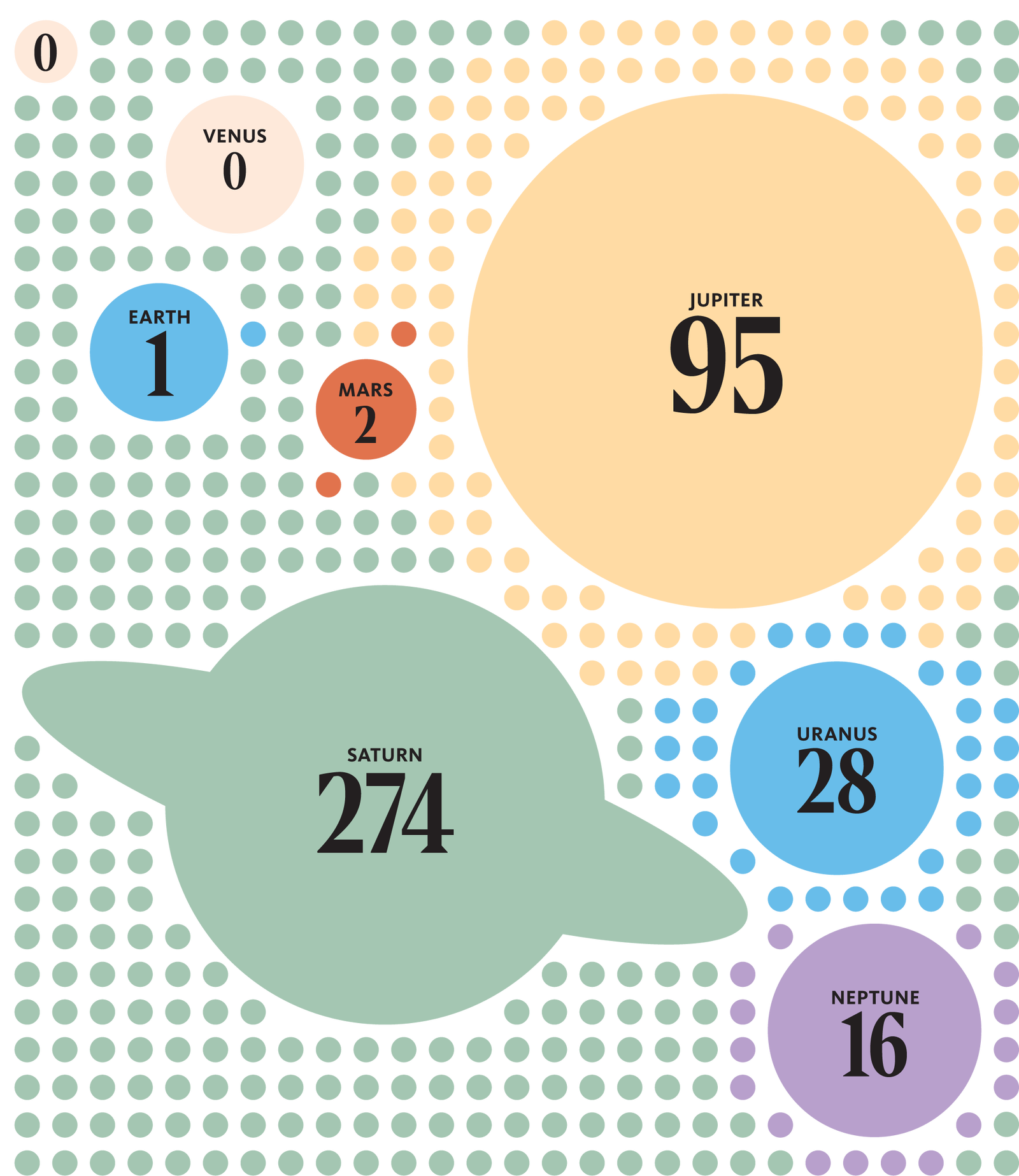 Earth’s moon is the brightest and most recognizable feature in our night sky. But most of the other planets in our solar system outshine us in their number of moons.