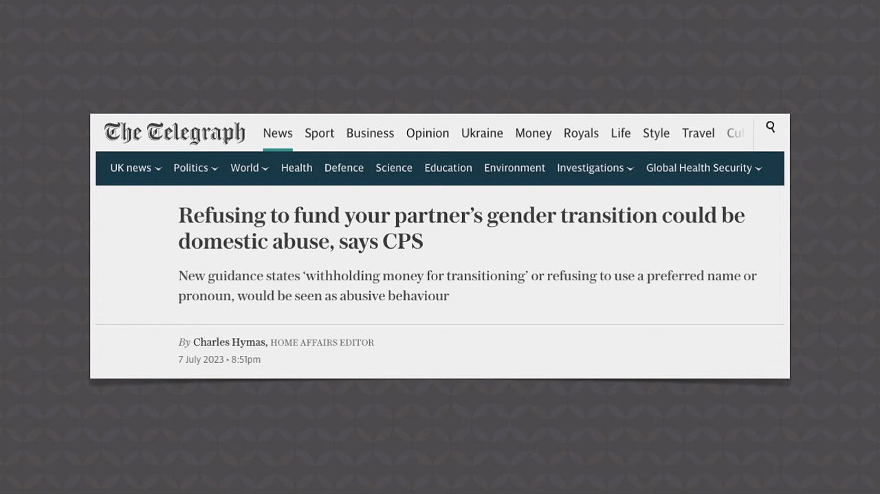 Don’t want to use your family finances to pay for elective surgery so someone can mutilate their perfectly healthy body to try and become someone they are not and can never be? Well, according to new guidance released in the UK from the Crown Prosecution Services (CPS), if that’s you, you may be a “domestic abuser.” But the guidance gets worse.