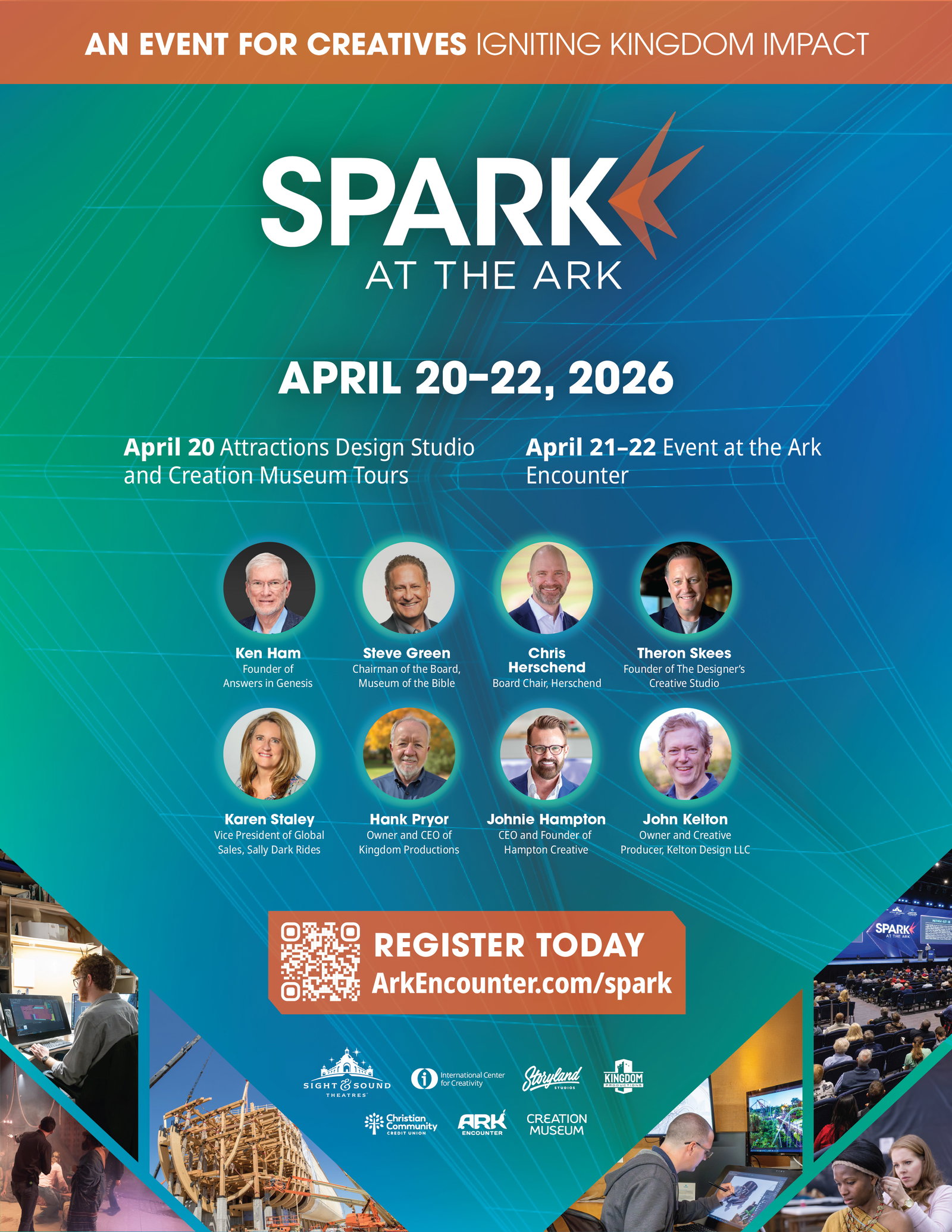 | 8:30 a.m.–12:00 p.m. | Workshops at Attractions Design Studio: Led by Answers in Genesis Design Team leaders. Choose from six focuses. Additional ticket purchase required—available at registration. |