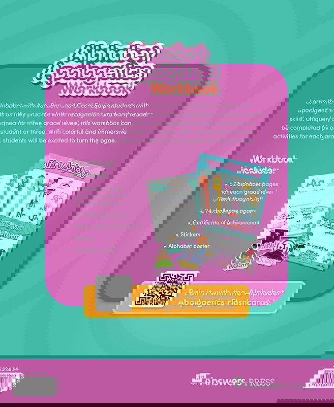 Designed for grades Pre-K through 1st grade, this colorful workbook includes alphabet pages for each grade level, challenge pages, stickers, a certificate, and an alphabet poster! It also pairs well with our Alphabet Apologetics Flashcards and Alphabet Apologetics Word Wall Cards. With this resource, early learners will become more proficient in their ABCs and grow in their knowledge of God’s Word— all while having fun!