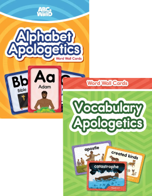 Each card features a vocabulary word and corresponding biblical illustration. Includes a user guide listing definitions, scripture for each word, and suggested activities. 50 cards. Pair with the Alphabet Apologetics Word Wall cards and Flashcards.