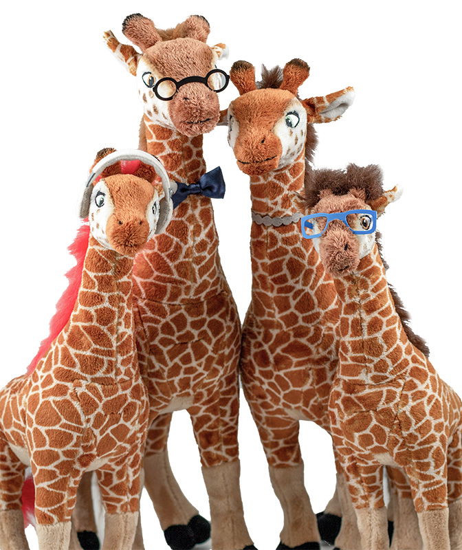 Take the Giraffe family on your next adventure with these keepsake plush toys (and keep an eye out—you may just see them on TV!)