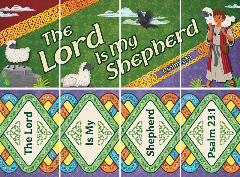 You will need a wide-format printer to print these posters yourself. This scene setter features the beginning of the theme verse. One side features a vertical orientation for those who want to hang the panels from the ceiling. The other side features a horizontal orientation for mounting on a wall. Or orient them any way you wish! Set of 4 panels. Each panel is approximately 62.6 x 42.3 in. (1590 x 1074 mm). Total size is approximately 169.2 x 62.6 in. Non returnable. Having these printed at local copy stores can be very expensive. Please check pricing before purchasing the PDF.