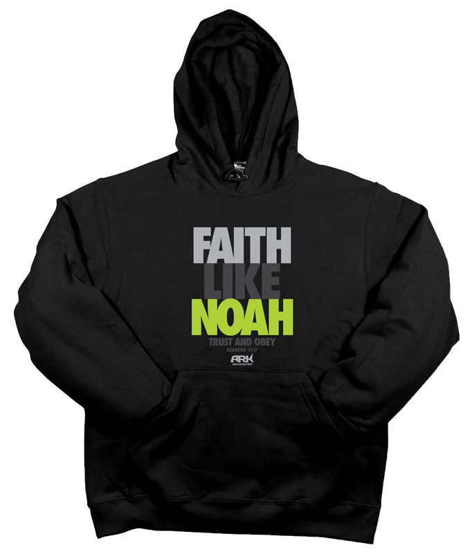 The Bible describes Noah as “a just man, perfect in his generations” who “walked with God.” He appears in the Hall of Faith in Hebrews 11 with this description, “By faith Noah, being divinely warned of things not yet seen, moved with godly fear, prepared an ark for the saving of his household, by which he condemned the world and became heir of the righteousness which is according to faith” (Hebrews 11:7). Be encouraged to follow the godly, faithful example of Noah with this trendy hoodie.