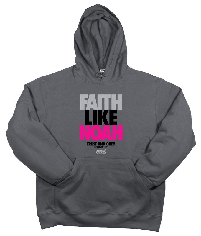The Bible describes Noah as “a just man, perfect in his generations” who “walked with God.” He appears in the Hall of Faith in Hebrews 11 with this description, “By faith Noah, being divinely warned of things not yet seen, moved with godly fear, prepared an ark for the saving of his household, by which he condemned the world and became heir of the righteousness which is according to faith” (Hebrews 11:7). Be encouraged to follow the godly, faithful example of Noah with this trendy hoodie.
