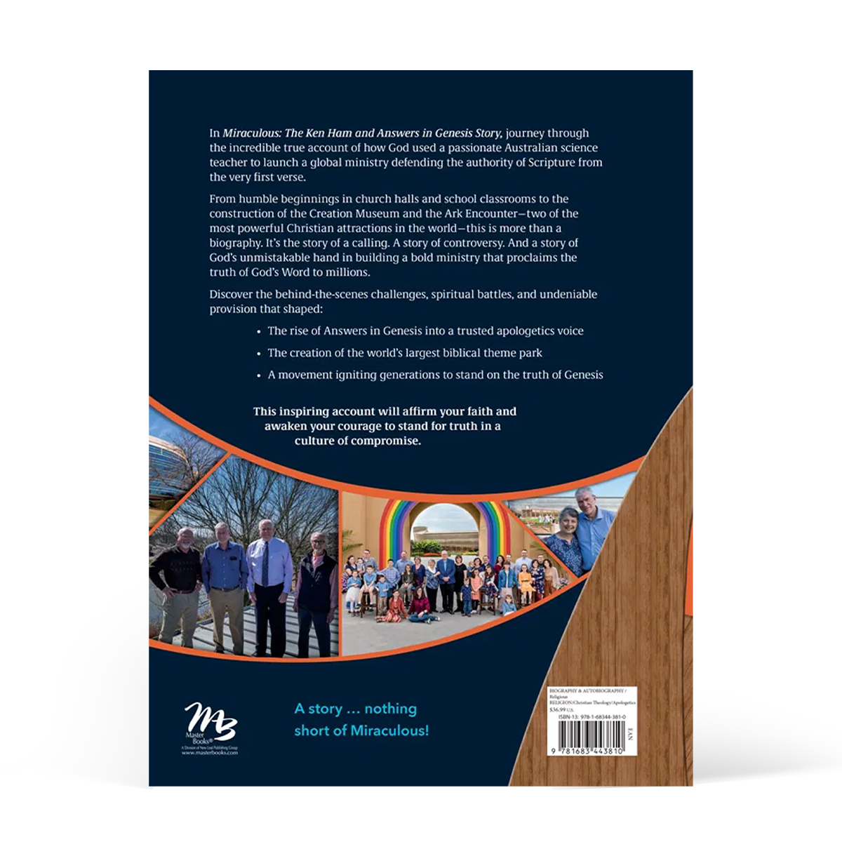 Miraculous! is a fascinating account of faith, “Red Sea moments,” battles, God’s miraculous provision, and so much more. It’s not merely a history of the ministry or even of Ken Ham’s life, but instead is a Christian journey involving teaching, lessons learned, challenges in trusting God when the way ahead seems impossible, and accomplishments beyond what could have humanly been expected. It’s a remarkable journey—truly miraculous!