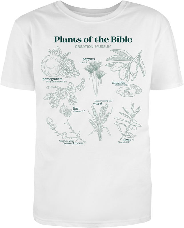 This vintage-inspired t-shirt features a variety of plants mentioned in the Bible, in a nod to our Plants of the Bible Conservatory at the Creation Museum.